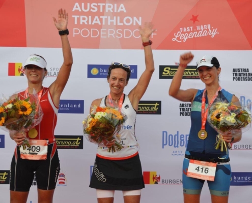 Meinen größten Erfolg feierte ich 2019 auf der Langdistanz beim Austria Triathlon in Podersdorf, wo ich als 3. Dame gesamt ins Ziel kam und den 1. Altersklassen-Rang belegte.
